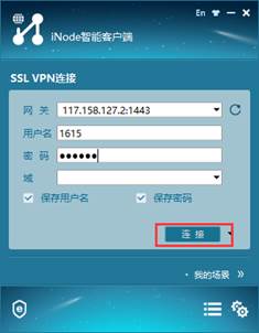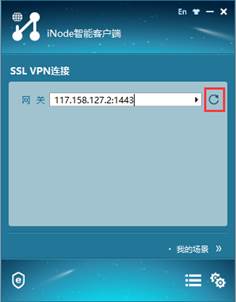 (2)双击桌面上“iNode智能客户端”,在网关处填写117.158.127.2:1443,点击刷新按钮。