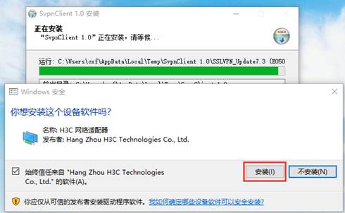 提示:若用户系统中安装有360、瑞星、金山等安全类软件,建议先暂时关闭退出此类软件后再进行VPN的安装。